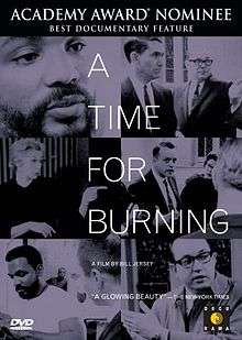 A Time for Burning is a 1966 American documentary film which explores the attempts of the minister of Augustana Lutheran Church in Omaha, Nebraska, to persuade his all-white congregation to reach out to "negro" Lutherans in the city's north side. The film was directed by San Francisco filmmaker William C. Jersey and was nominated as Best Documentary Feature in the 1967 Academy Awards.[1] The film was commissioned by the Lutheran Church in America.