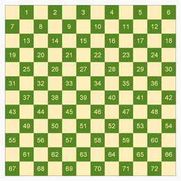 Games are recorded using the same method of notation used by other draughts variants, extended for a board of 144 squares (see diagram).