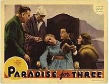 Paradise for Three, titled Romance for Three in the United Kingdom, is a 1938 romantic comedy film starring Frank Morgan as a wealthy industrialist who decides to find out about his German workers by temporarily living among them incognito. It was adapted from Erich Kästner's novel Three Men in the Snow.