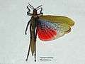 Species of the genus Phymateus are African locusts about 70 millimetres (2.8 in) long. Some species at maturity are capable of long migratory flights. They raise and rustle wings when disturbed and may secrete a noxious fluid from the thoracic joint.[1] These locusts feed on highly toxic plants and usually congregate in large numbers on trees and shrubs, arranged in such a way as to resemble foliage. Females of the species Phymateus morbillosus are unable to fly, despite fully developed wings.[2]